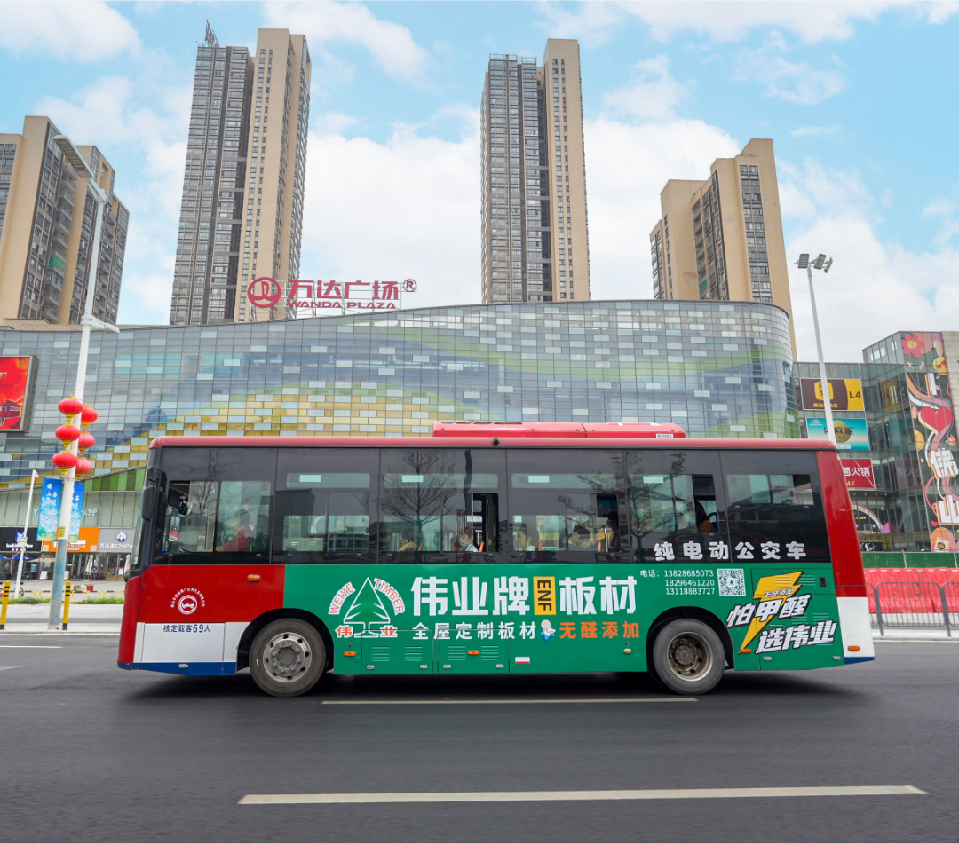 全城矚目,萬(wàn)眾期待偉業(yè)牌ENF板材公交車(chē)體廣告上線了 近日,偉業(yè)牌ENF板材公交車(chē)體廣告正式上線,為桂林的城市風(fēng)景增添了一抹亮眼的色彩。這一廣告形式上線,視覺(jué)盛...